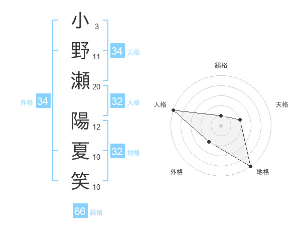 小野瀬 陽夏笑さんを姓名の画数から五運を鑑定