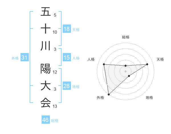 五十川 陽大会さんを姓名の画数から五運を鑑定