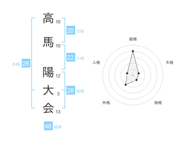 高馬 陽大会さんを姓名の画数から五運を鑑定