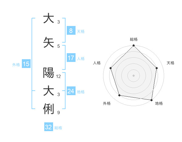 大矢 陽大俐さんを姓名の画数から五運を鑑定