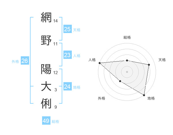 網野 陽大俐さんを姓名の画数から五運を鑑定
