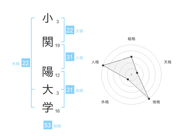 小関 陽大学さんの総格は53画の3点
