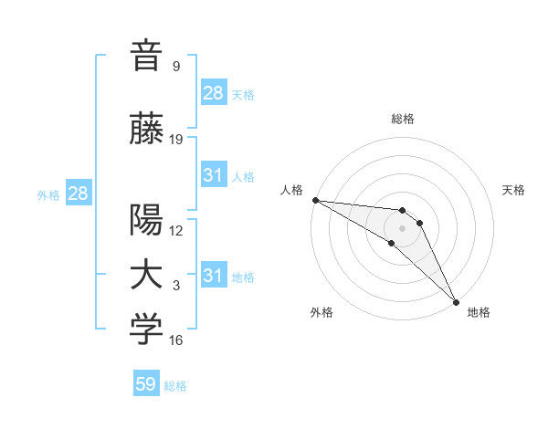 音藤 陽大学さんを姓名の画数から五運を鑑定