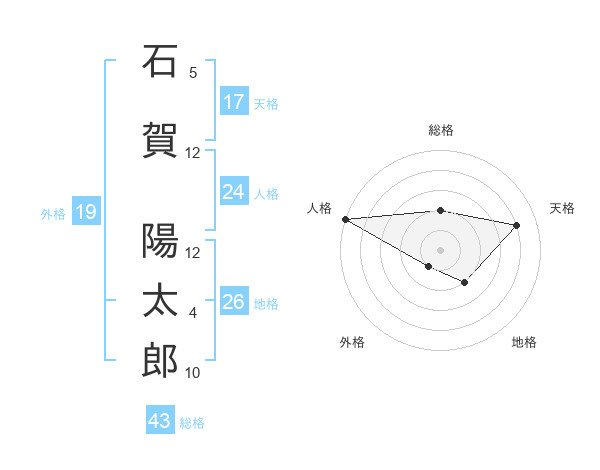 石賀 陽太郎さんの天格は17画の4点!