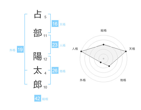 占部 陽太郎さんを姓名の画数から五運を鑑定