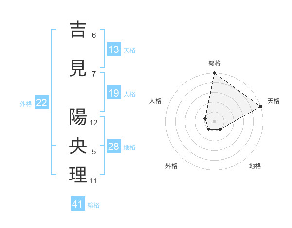 吉見 陽央理さんの天格は13画の5点!