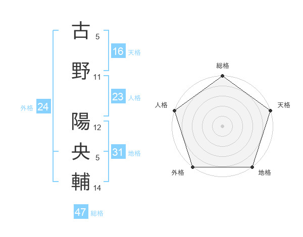 古野 陽央輔さんを姓名の画数から五運を鑑定