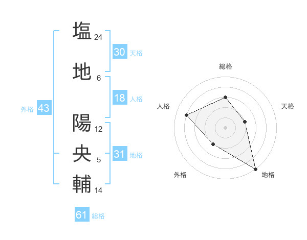 塩地 陽央輔さんを姓名の画数から五運を鑑定