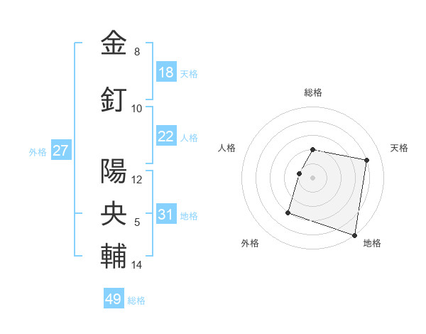 金釘 陽央輔さんを姓名の画数から五運を鑑定