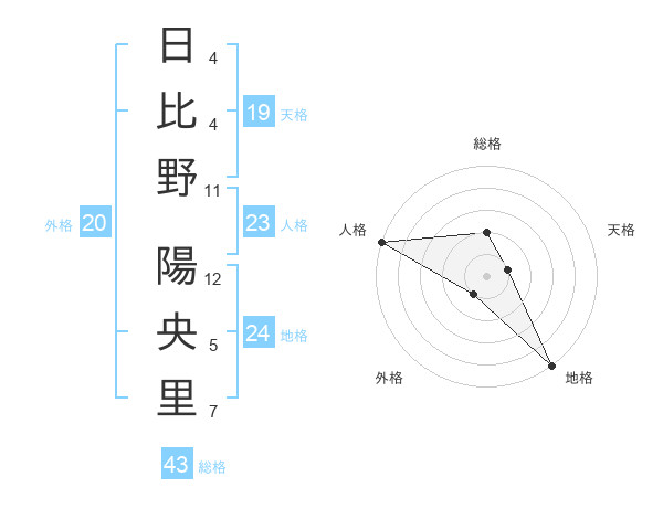 日比野 陽央里さんの天格は19画の1点!