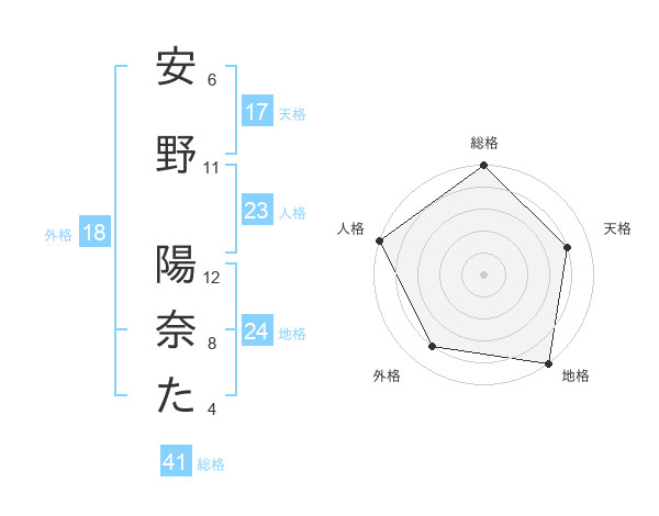 安野 陽奈たさんを姓名の画数から五運を鑑定