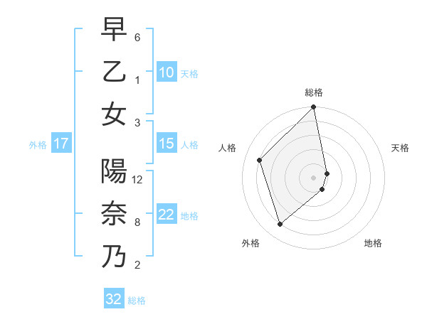 早乙女 陽奈乃さんを姓名の画数から五運を鑑定