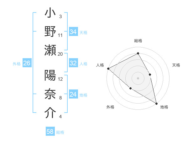 小野瀬 陽奈介さんの総格は58画の4点