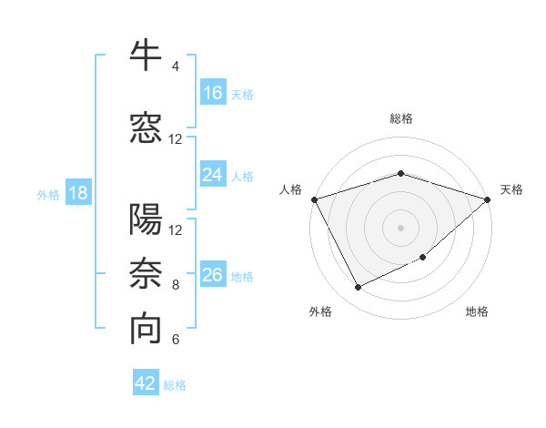 牛窓 陽奈向さんの総格は42画の3点!