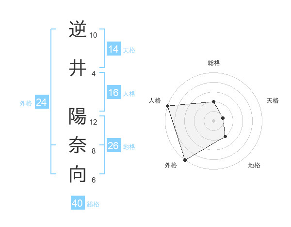 逆井 陽奈向さんを姓名の画数から五運を鑑定