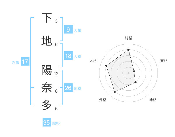 下地 陽奈多さんの外格は17画の4点!