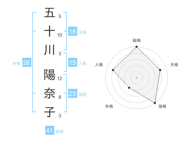 五十川 陽奈子さんを姓名の画数から五運を鑑定