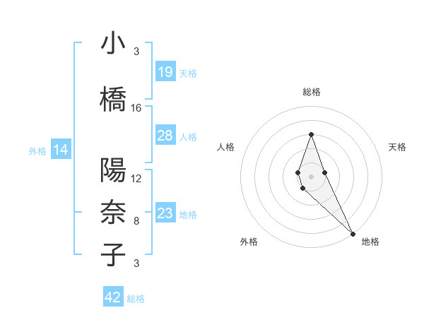 小橋 陽奈子さんを姓名の画数から五運を鑑定