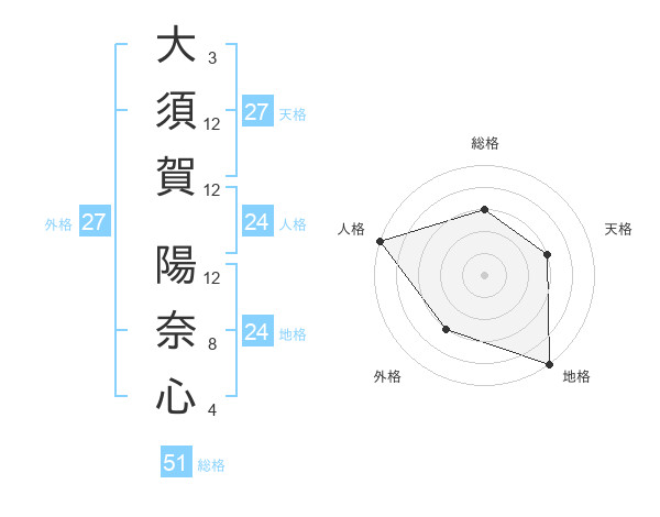 大須賀 陽奈心さんを姓名の画数から五運を鑑定