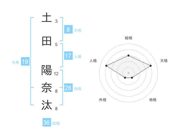土田 陽奈汰さんの天格は8画の4点