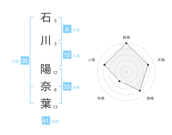 石川 陽奈葉さんの総格は41画の5点