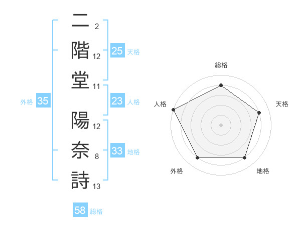 二階堂 陽奈詩さんの天格は25画の4点!
