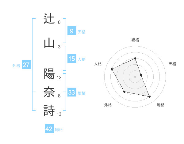 辻山 陽奈詩さんを姓名の画数から五運を鑑定