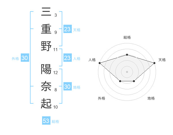 三重野 陽奈起さんを姓名の画数から五運を鑑定