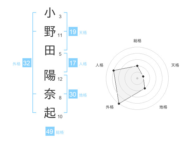 小野田 陽奈起さんの外格は32画の5点!