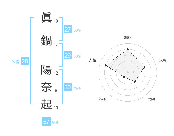 眞鍋 陽奈起さんを姓名の画数から五運を鑑定