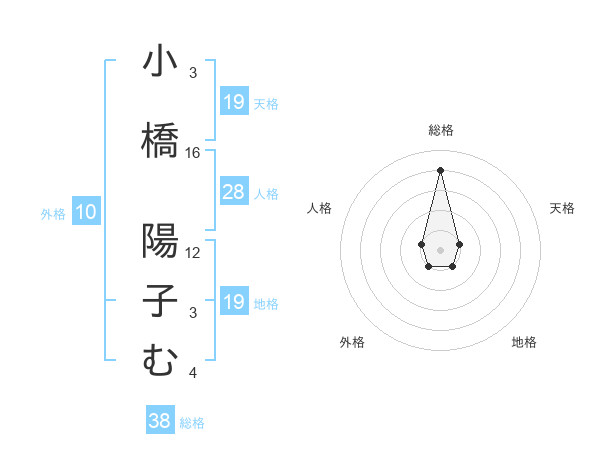小橋 陽子むさんを姓名の画数から五運を鑑定