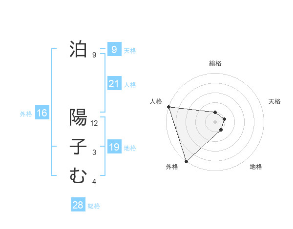 泊 陽子むさんの外格は16画の5点
