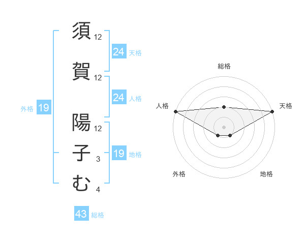 須賀 陽子むさんを姓名の画数から五運を鑑定