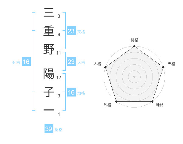 三重野 陽子一さんを姓名の画数から五運を鑑定