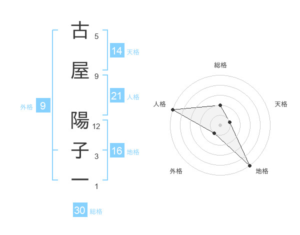 古屋 陽子一さんを姓名の画数から五運を鑑定