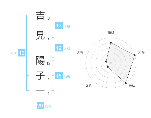 吉見 陽子一さんを姓名の画数から五運を鑑定