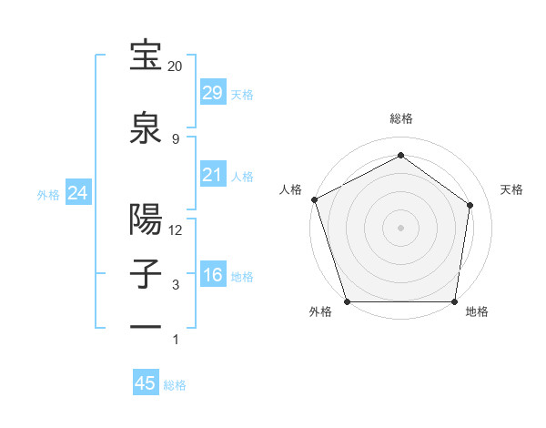 宝泉 陽子一さんの天格は29画の4点!