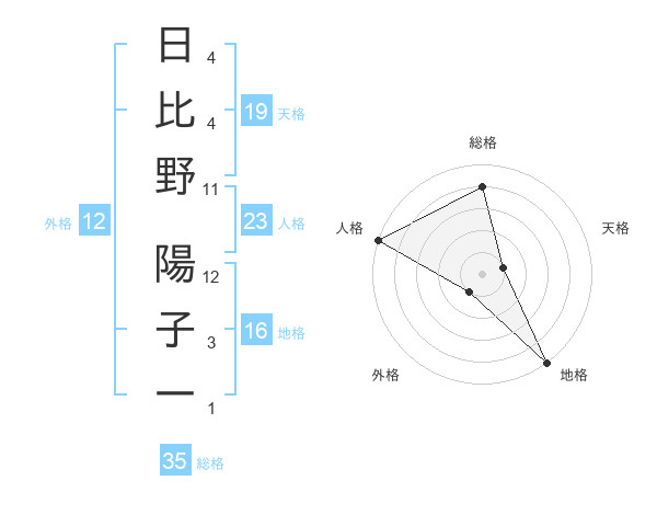日比野 陽子一さんを姓名の画数から五運を鑑定