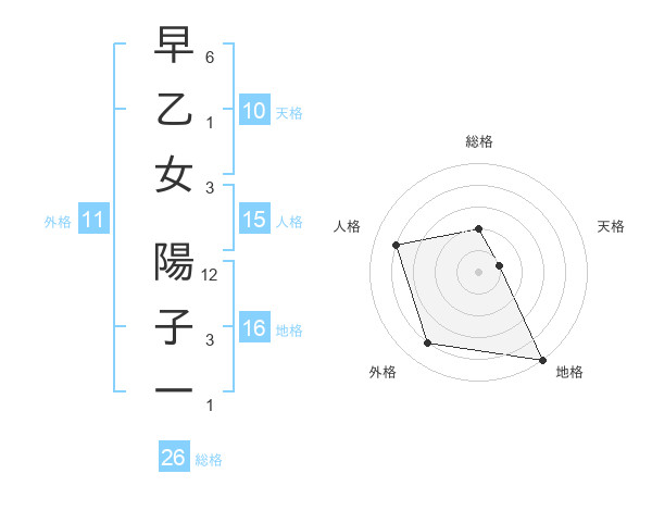早乙女 陽子一さんの総格は26画の2点!