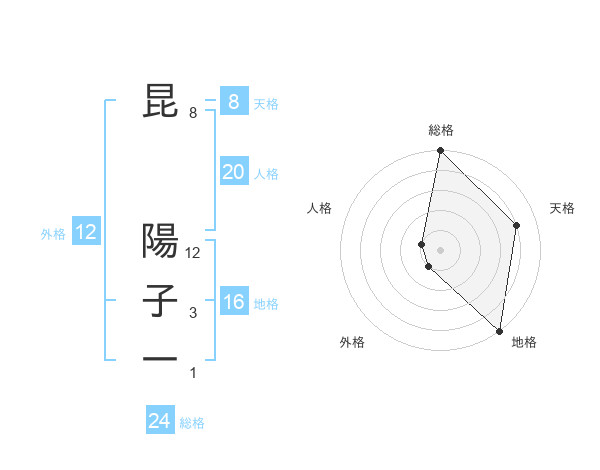 昆 陽子一さんの外格は12画の1点