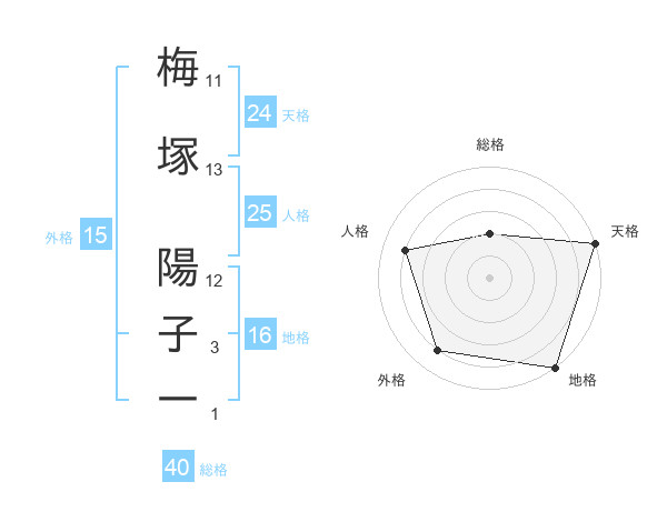 梅塚 陽子一さんを姓名の画数から五運を鑑定