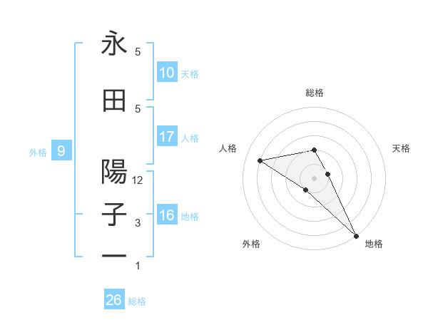 永田 陽子一さんを姓名の画数から五運を鑑定