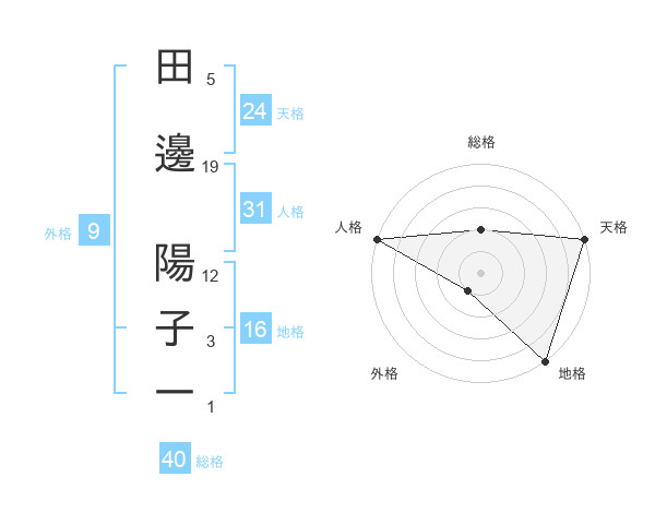 田邊 陽子一さんを姓名の画数から五運を鑑定