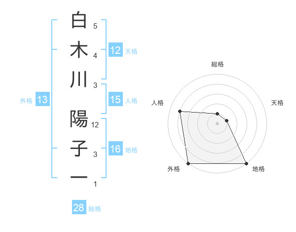 白木川 陽子一さんを姓名の画数から五運を鑑定