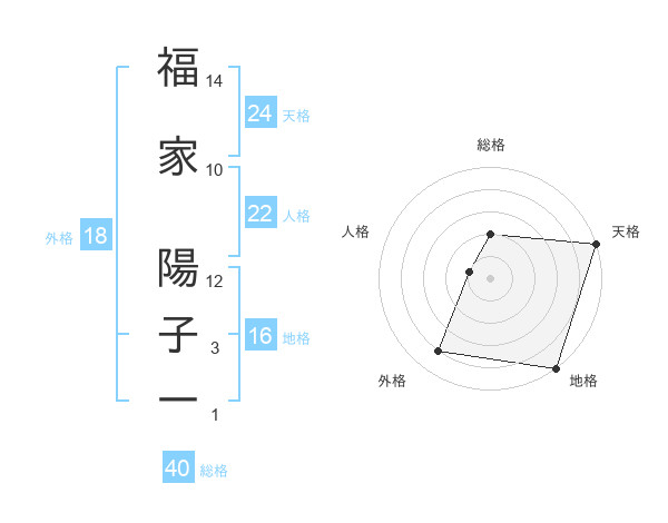 福家 陽子一さんを姓名の画数から五運を鑑定
