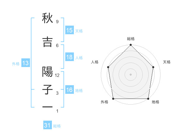 秋吉 陽子一さんを姓名の画数から五運を鑑定