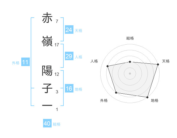 赤嶺 陽子一さんを姓名の画数から五運を鑑定