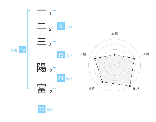 一二三 陽富さんの総格は30画の2点!
