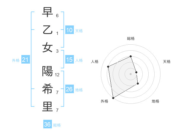 早乙女 陽希里さんを姓名の画数から五運を鑑定