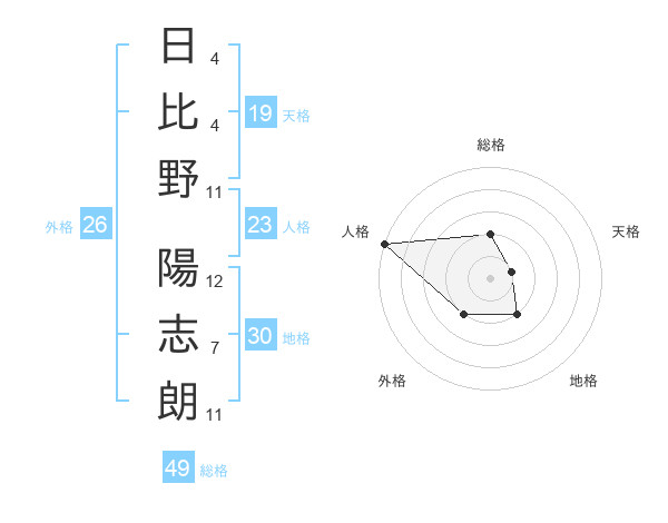 日比野 陽志朗さんの総格は49画の2点!